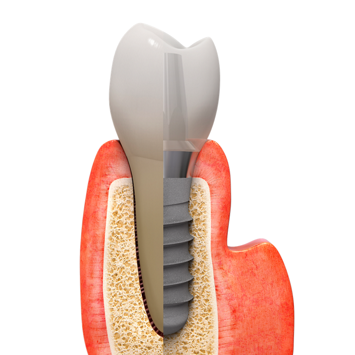 Een implantaatbehandeling biedt een sterke en mooie oplossing voor het vervangen van ontbrekende tanden. Het implantaat van titanium of zirkonium functioneert als een kunstwortel en zorgt voor een stevige basis voor kroon, brug of klik-prothese.